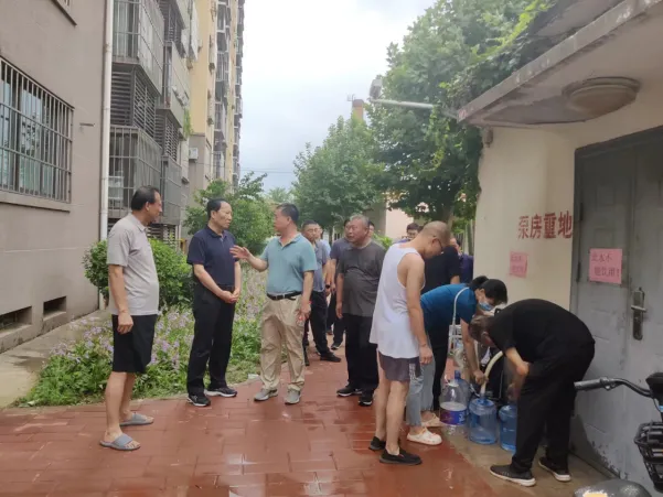 马刚现场查看二勘局家属院自备井供水情况 马刚先后到二勘局办公区、家属院,物探院装备库房,中化局地研院实验室,国家矿山应急救援大地特勘队基地现场检查慰问,强调要深入贯彻落实习近平总书记对防汛救灾工作的重要指示精神,认真落实全国安全生产电视电话会议精神及总局党委关于防汛救灾的工作部署,充分发扬地质人“特别能战斗”精神,克服当下困难,在确保安全的前提下,有序推动复工复产。 马刚慰问大地特勘队突击队员 马刚指出,当前依然处于防汛救灾的关键时期,要统筹发展与安全,以务实举措做好防汛救灾和复工复产“后半篇”文章。一是要继续加强防汛应急工作。坚持把“防”放在第一位,着力构筑“人防、物防、技防”安全网。抓好重点领域、重点环节的安全隐患排查,落实管控措施,严防发生次生灾害,特别是针对高危压缩气体,要严格按照规范取用,做好各项保护措施,确保本质安全。二是要强化灾后卫生防疫及员工安抚工作。清淤完成后,及时进行环境消杀,预防灾后疾病发生蔓延,保障员工生命健康安全。高度关注受灾员工生产生活情况,着力解决急难愁盼突出问题,把总局党委的关怀关心送到受灾员工的心坎上。三是要科学制订复工复产方案。明确职责分工,抓好过程管理,把复工复产及安全生产工作谋划部署到位,督促落实到位,尽最大可能将灾害损失降到最低。 截至8月7日晚,广受社会关注的二勘局金隅地质嘉园小区地下车库积水已抽排完毕,进入清淤阶段,二勘局管辖区域的淤泥垃圾全部清理完成。物探院总部与中化局地研院已恢复办公,室内项目基本恢复。大地特勘队按国家安全生产应急救援中心指令,在涿州市码头镇洋泗庄村执行救援作业。 总局在涿单位主要领导,总局安全环保部有关负责同志陪同检查。