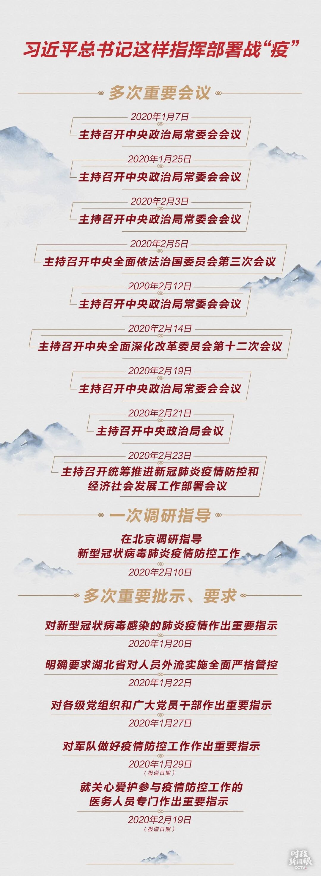 2月12日,习近平在中央政治局常委会会议上提出,非疫情防控重点地区要分区分级制定差异化防控策略,统筹疫情防控与经济社会秩序恢复。21日,他主持召开中央政治局会议,会议的一大重点就是统筹做好疫情防控和经济社会发展工作,提出“要建立与疫情防控相适应的经济社会运行秩序。”两天后,统筹推进新冠肺炎疫情防控和经济社会发展工作部署会议召开。