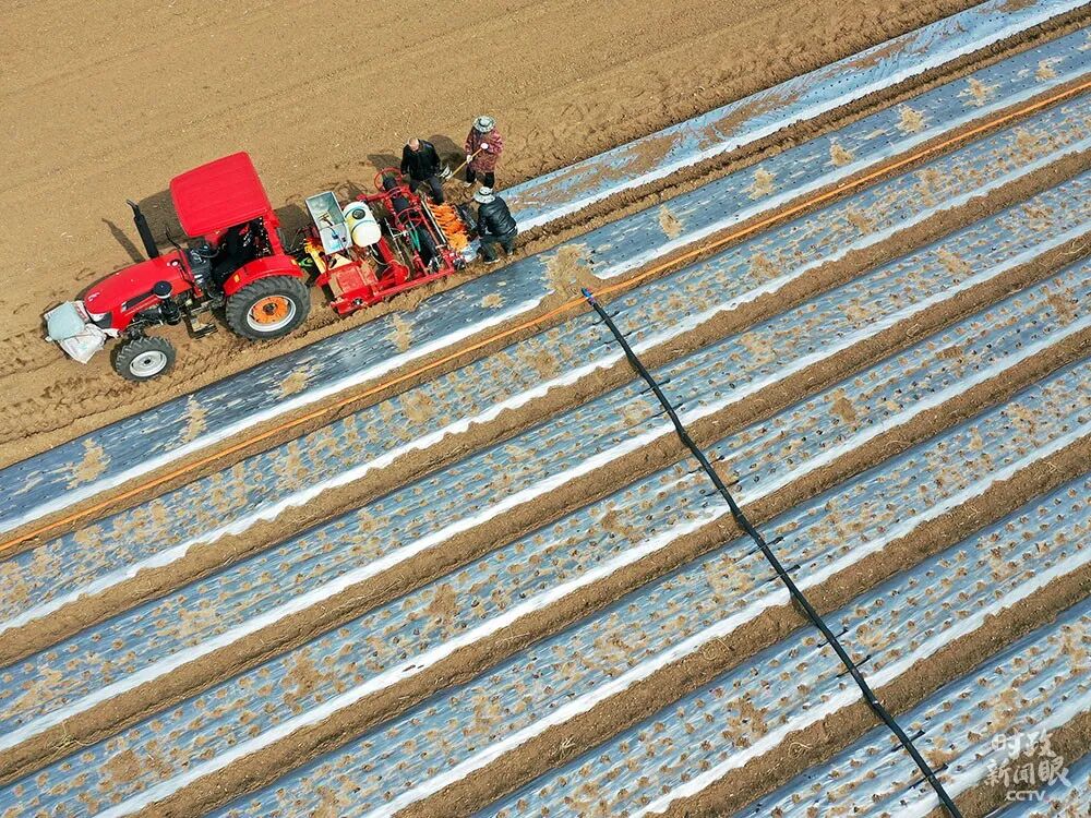 △雨水时节春耕忙。2020年2月19日,安徽亳州,谯城区十河镇佟营村,茂平农业种植合作社的农民正在利用联合播种机播种中药材丹参。